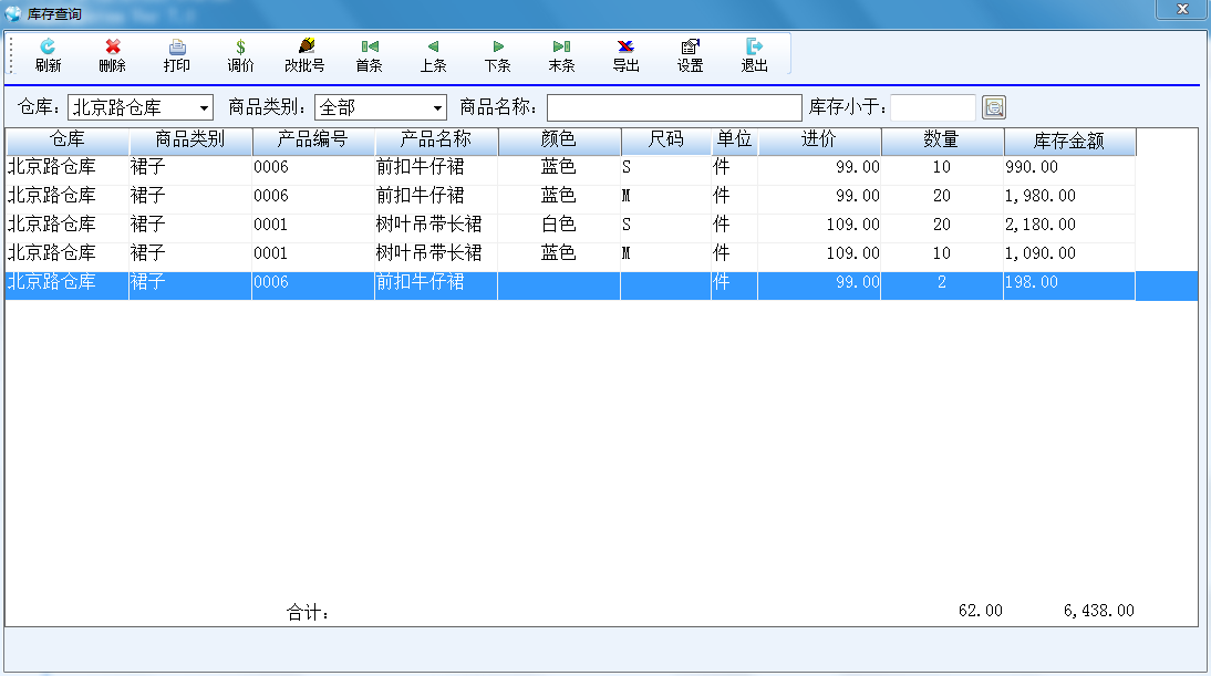 庫(kù)存查詢(xún)界面,可以根據(jù)授權(quán)查詢(xún)每一個(gè)分店的庫(kù)存,方便調(diào)貨