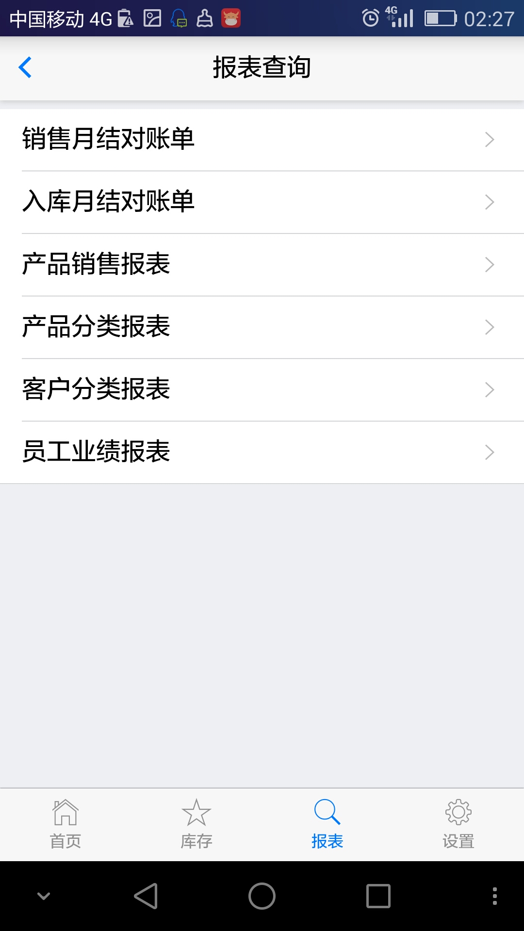 手機(jī)端報(bào)表查詢(xún)界面,可以在手機(jī)上實(shí)時(shí)查詢(xún)各種報(bào)表